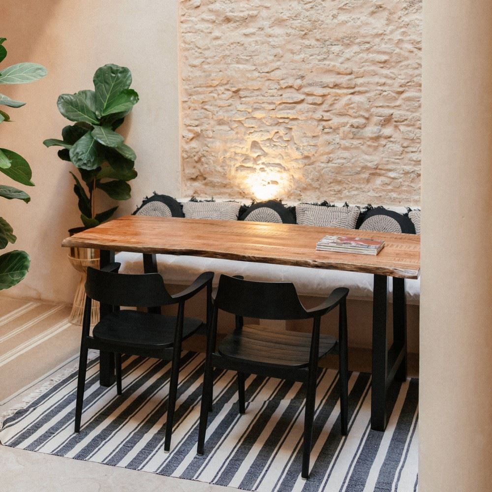 The Saggi ooden chair, contemporary in style, is a sleek and modern option for the home or office. It is made of teak wood, which is known for its strength and charm, making it a popular choice for high-quality furniture. These chairs tend to have clean, minimalist lines, with smooth finishes and neutral colors that suit any environment. In addition, teak wood is easy to work with and can be molded into a variety of shapes, allowing for creative and bold designs. These chairs are ideal for complementing a contemporary space, adding a touch of elegance and sophistication. Their ergonomic design makes them comfortable to sit in for long hours, making them a practical and aesthetically pleasing choice.