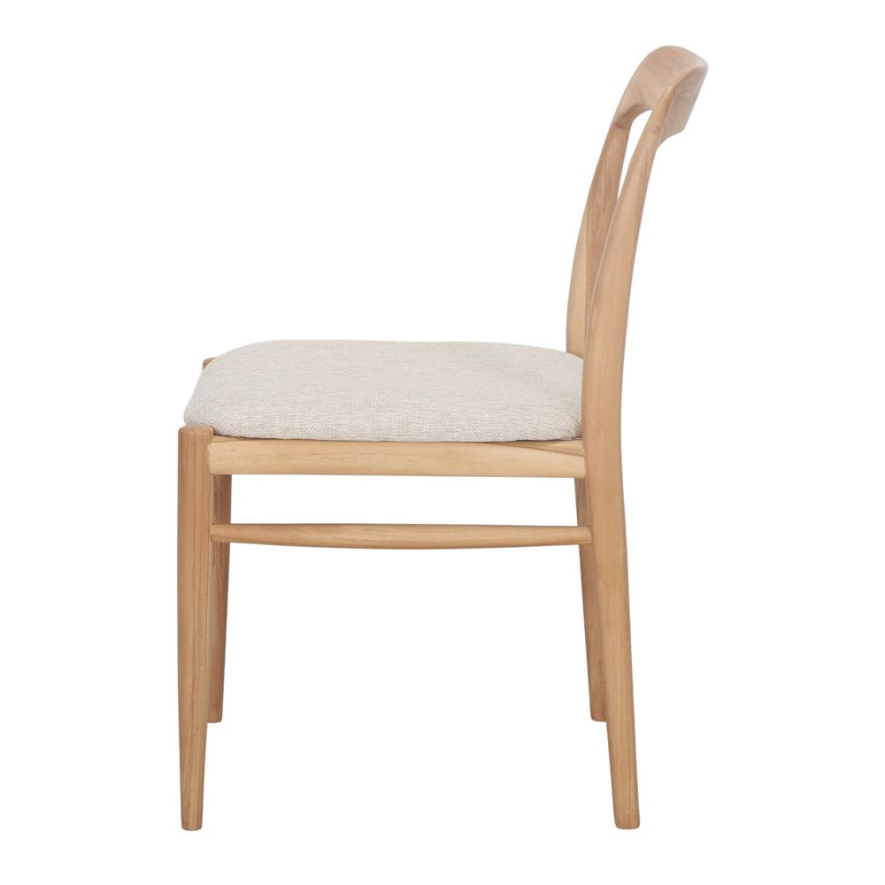 The fabric-upholstered seat adds comfort and a touch of softness that contrasts with the solidity of the wood. This combination achieves a perfect balance between comfort and style, making the Sahara Chair an excellent choice for dining rooms, workspaces, or meeting areas.