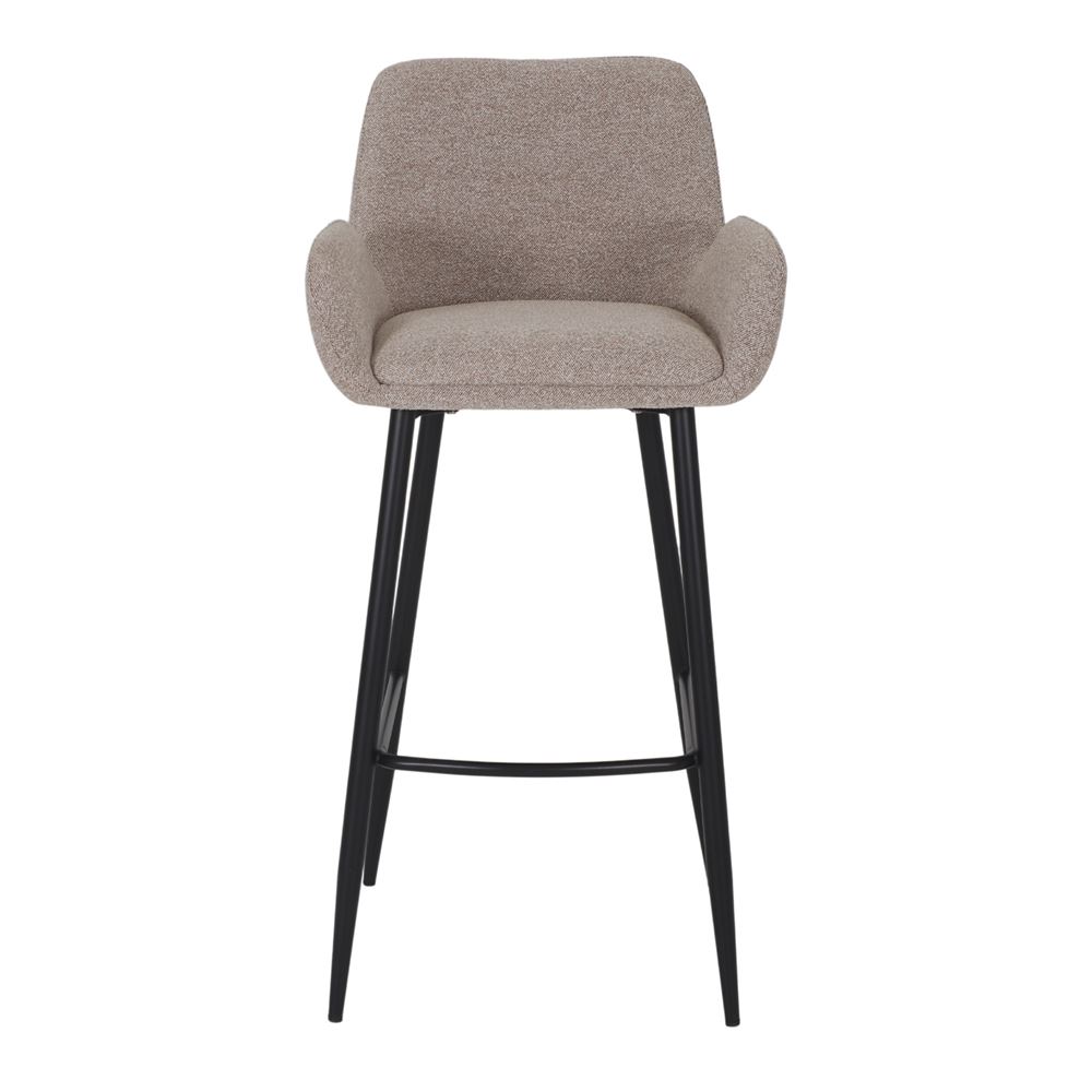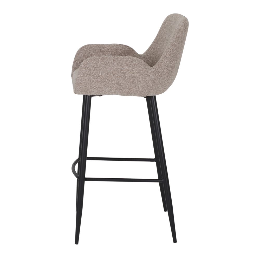 Our Saturnin upholstered high stool is made of metal and upholstered in fabric. Its strong frame makes it resistant and very stable. Very comfortable, thanks to its wrap-around design and its soft and pleasant upholstery. This stool is ideal for both home and catering premises. With a strong Mid Century style, you can combine it with tables with metal frames and marble or terrazzo tabletops, metal wall lights with glass lampshades, or you can create your own style by combining natural fibers and other upholstery.
