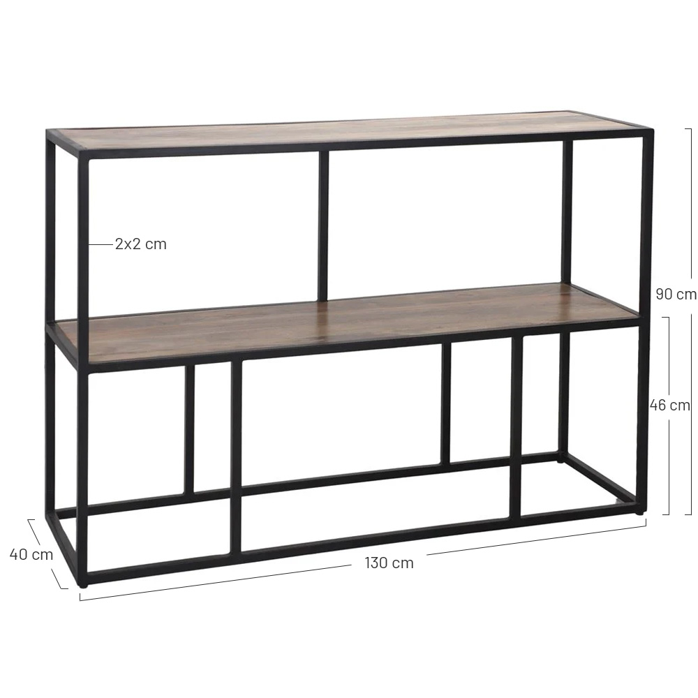 The Seguin wood and metal shelf is a piece of furniture that combines the warmth of wood with the strength of metal, creating a unique industrial style. The Seguin shelving is a piece that stands out for its sturdy look and industrial aesthetic. It is constructed from a combination of solid wood and metal, giving it a modern and attractive appearance. The structure of the shelf is made of sturdy metal, finished in black paint, which enhances its industrial style.