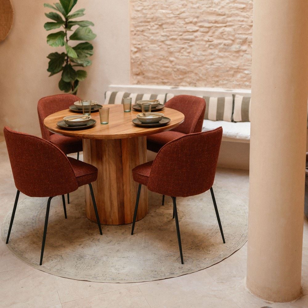 Originality and comfort are at the heart of the design of the Seken upholstered chair. Its textile upholstery will give a soft touch and a comfortable seat as well as a cozy and warm look to your interior. Padded with foam, this upholstered chair is ultra comfortable, making it a perfect dining chair. To make this type of upholstered chair stand out, we will pair it with a large dining table, for example.
