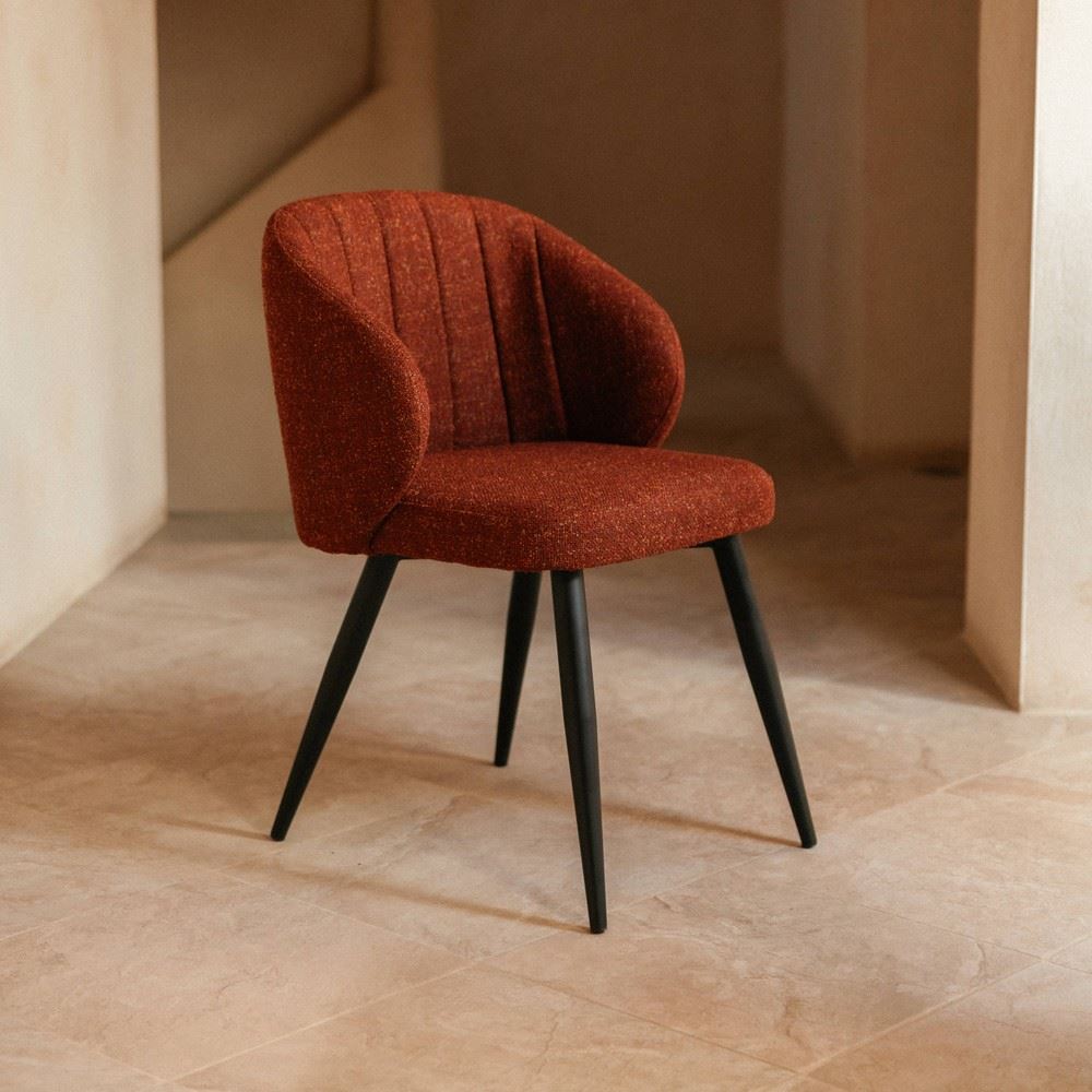 Originality and comfort are at the heart of the design of this Inside upholstered chair. Its textile upholstery will give a soft touch and a comfortable seat as well as a cozy and warm look to your interior. Padded with foam, this chair is ultra comfortable, making it a perfect dining chair. You can also use it as a desk chair. To make this type of upholstered chair stand out, we will pair it with a Mid Century style dining table for example.