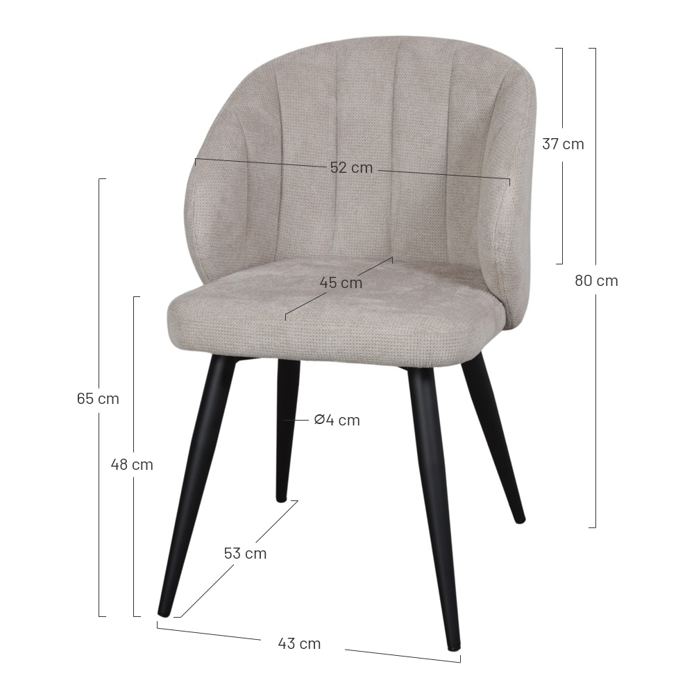 Measurements: 52x60x80 cm | Seat height: 48 cm | Armrests: 65-75 cm
