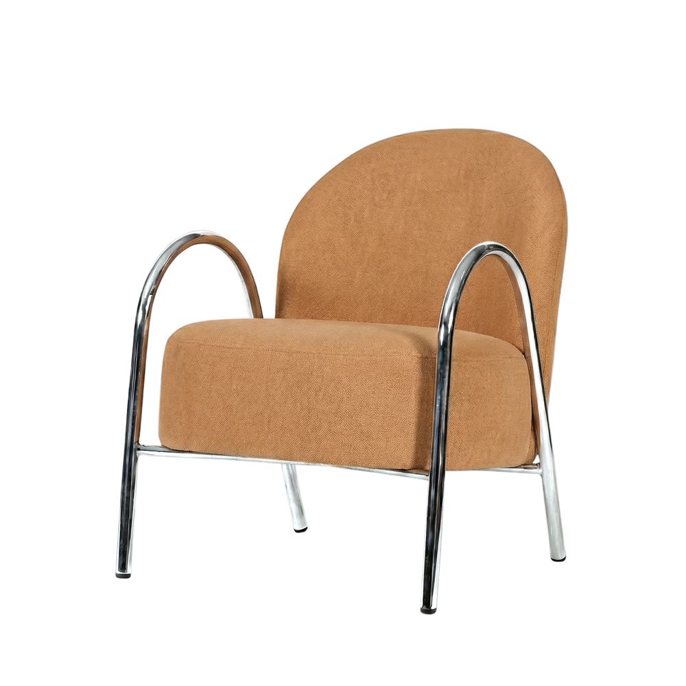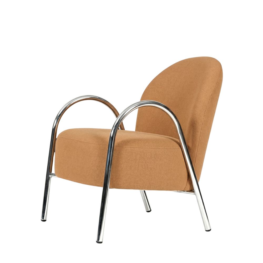 The textile upholstery adds a sense of comfort and warmth, inviting you to relax and enjoy moments of rest or conversation in its cozy embrace. Its versatility makes it ideal for living rooms, reading areas or even bedrooms, adding a touch of style and personality to any setting.