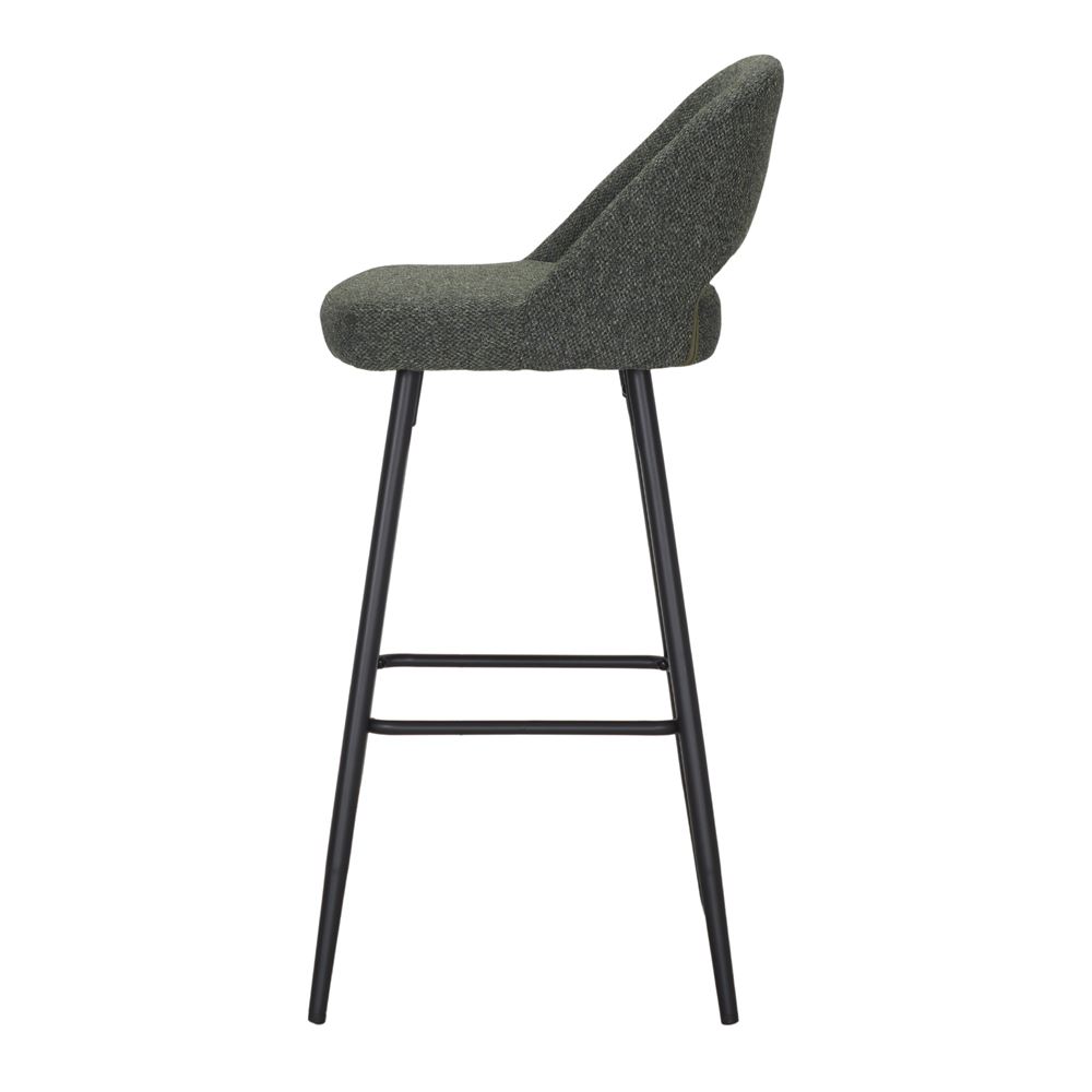 The Bangasy high upholstered stool is made of metal and upholstered in textile. Its strong structure makes it resistant and very stable. Very comfortable, thanks to its enveloping design and its soft and pleasant upholstery. This stool is ideal for both hospitality and home use. With a strong Mid Century style, you can combine it with tables with metal structures and marble or terrazzo tops, metal sconces with glass lampshades, or create your own style by combining natural fibers and other upholstery.