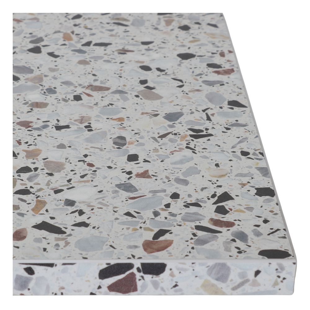 The multicolored imitation terrazzo finish adds an elegant and contemporary touch, ideal for creating sophisticated environments in cafeterias, restaurants, bars and other hospitality spaces. Thanks to its laminated surface, the lamidur Crackcolor top stands out for its easy cleaning, allowing it to be kept impeccable with minimal maintenance, something essential in environments where hygiene and speed are fundamental.