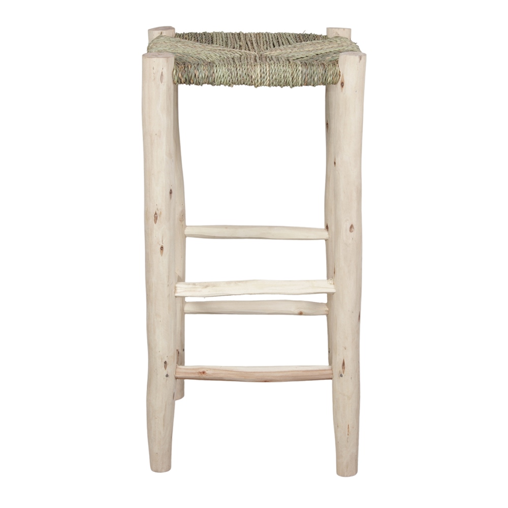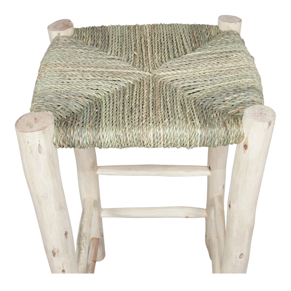 Tulane high stool Vintage/Shabby Chic style. It has a laurel wood frame and a seat made of natural palm leaf.