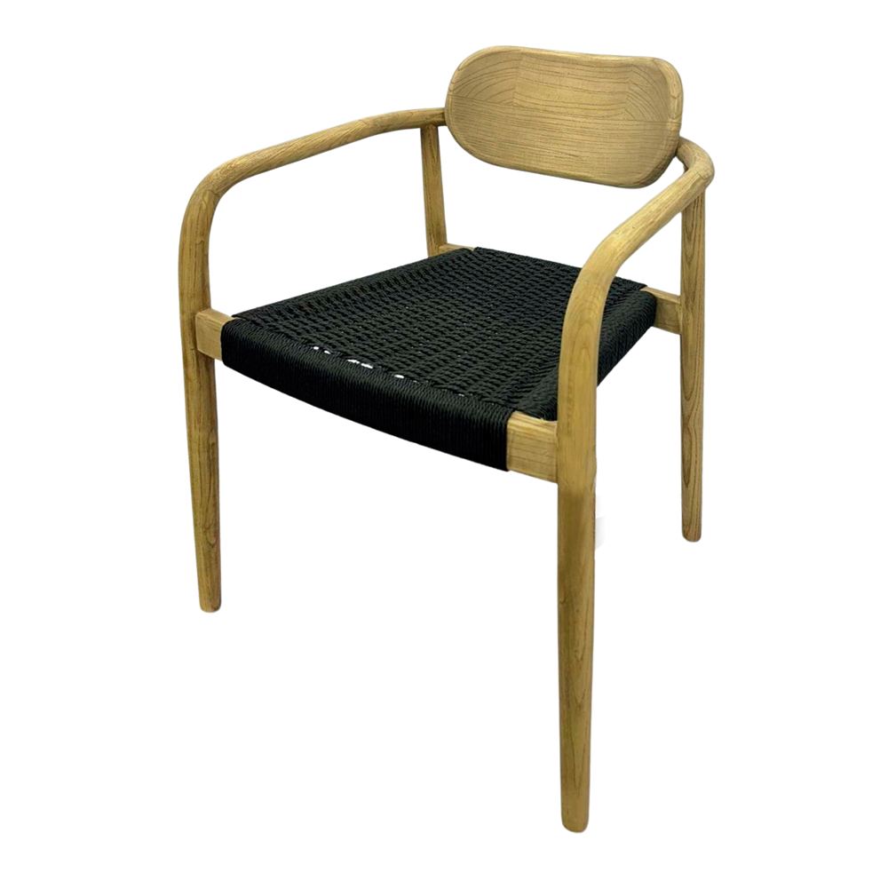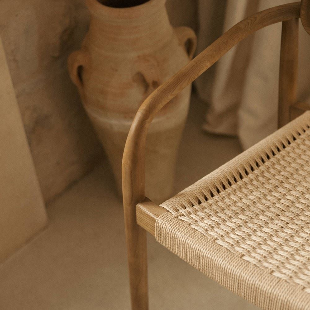 The seat, made from braided natural fiber, adds a handcrafted, organic touch that enhances its unique character. This combination of materials not only ensures comfort, but also provides an attractive contrast between the warm texture of the wood and the braided design of the seat.