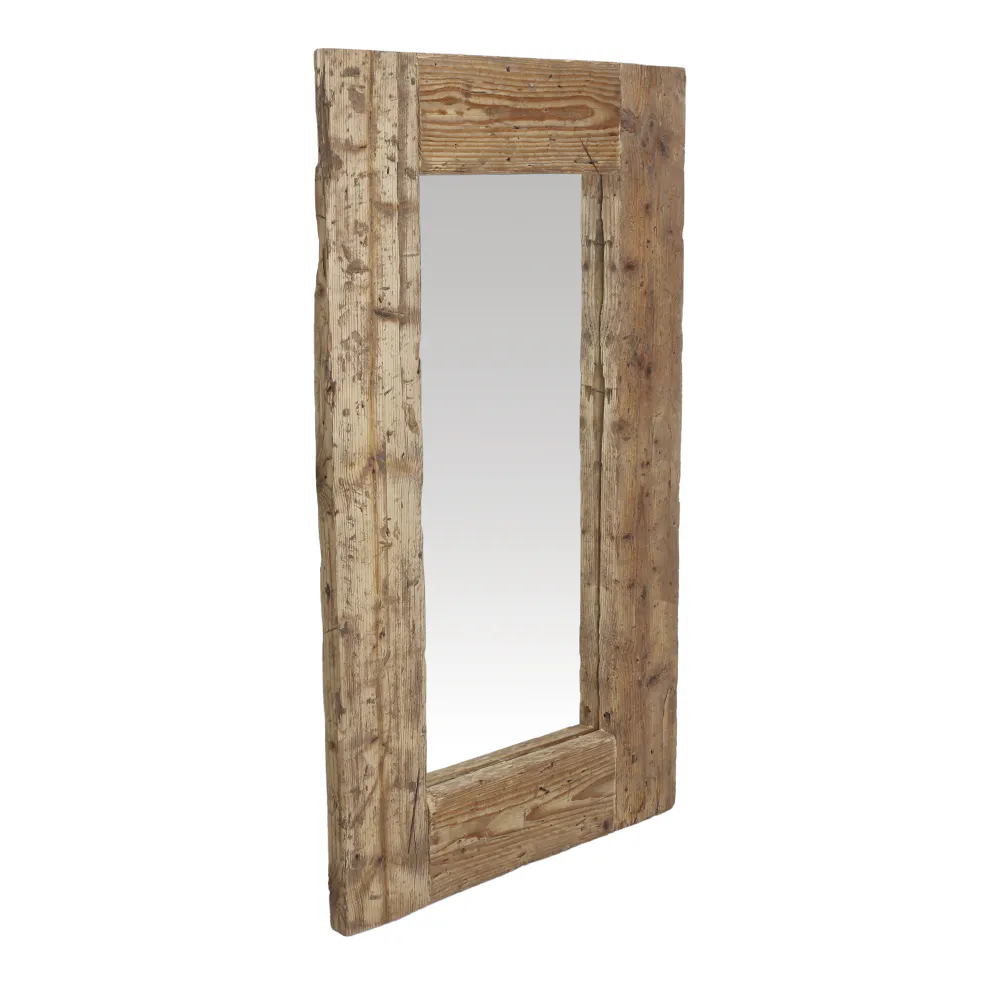 The Volta wooden mirror is a stunning piece with a rustic style. With a spectacular recycled wood frame, this mirror will be the center of attention. You can use it in an entryway, a bedroom, or even a business.