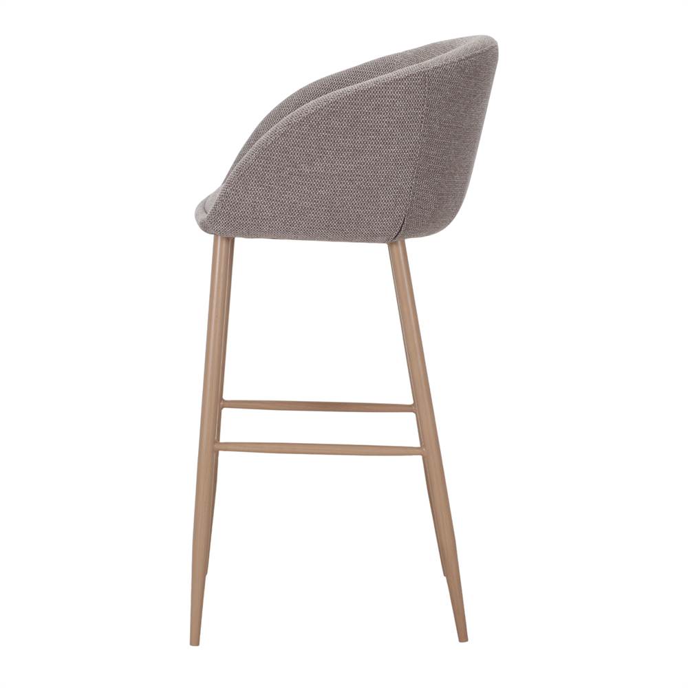 The seat and backrest are upholstered in textile, providing extra comfort without sacrificing the modern aesthetics of the design. Its ergonomic shape and height make it perfect for kitchen bars, high tables or hospitality spaces, combining comfort and style in a single product.